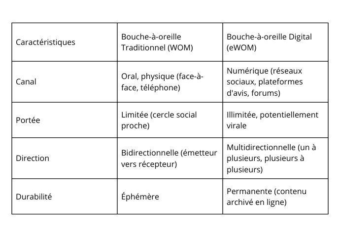L’eWOM est un levier de publicité gratuit et très puissant, mais il exige une gestion proactive, car un message négatif peut se propager encore plus rapidement qu’un message positif.