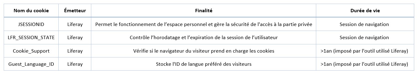 L’extranet utilise uniquement des cookies fonctionnels qui ont pour finalité de permettre ou faciliter une communication par voie électronique. Ils permettent aux principaux services de l’extranet de fonctionner de manière optimale.
